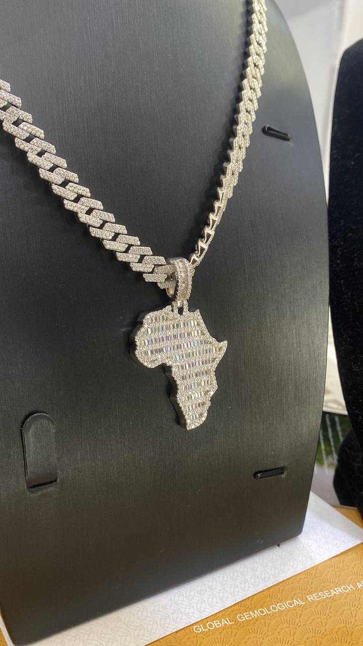 VVS Moissanite Diamond Cuban Neckchain and African Map Pendant